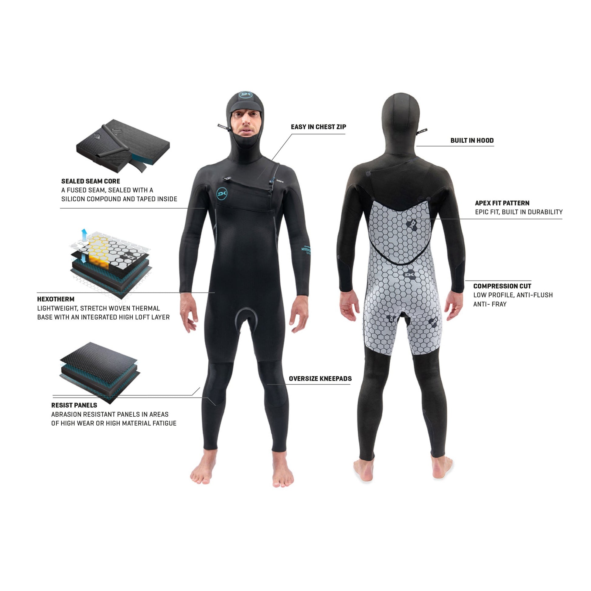 The Mission sets a new benchmark for wetsuits; unreal stretch, fit and comfort, outstanding warmth and drying times and unmatched durability.